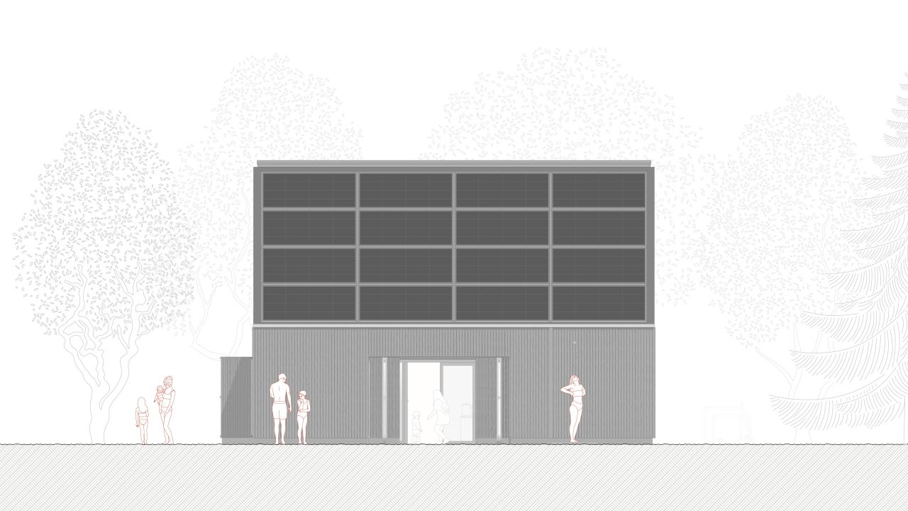 Die Aufgabe bestand darin, ein Konzept für die Entwicklung und Gestaltung eines multifunktionalen Neubaus in der Gemeinde Rohrdorf zu erstellen. Ziel war es, die Attraktivität des Ortes zu steigern und einen Treffpunkt für alle Bürger:innen zu schaffen. Dieser sollte ganzjährig nutzbar sein. Dabei sollte vor allem auf Reuse von Materialien, sozialer Nachhaltigkeit und Autarkie geachtet werde.